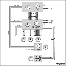 Η μονάδα ελέγχου Πύλη CHAMP διαμορφώνει το σημείο σύνδεσης για την ανταλλαγή δεδομένων ανάμεσα στο δίαυλο MOST-Bus και το K-CAN. Τα δύο συστήματα διαύλου μεταδίδουν μορφότυπους δεδομένων με διαφορετική αναλογία μέταδοσης δεδομένων και μορφότυπων. Για την επικοινωνία με όλα τα συστήματα, γίνεται αντίστοιχη διαμόρφωση των δεδομένων για τον αντίστοιχο δίαυλο στην Πύλη CHAMP.