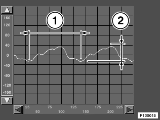 Σε αντίθεση με αυτή την εικόνα η ακόλουθη εικόνα δείχνει ένα σήμα, το οποίο έχει δημιουργηθεί από μία ελαττωματική αντλία υψηλής πίεσης (ένα έμβολο της αντλίας έχει βλάβη).