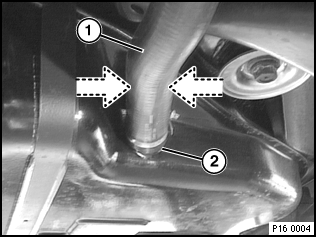 Geri tepme kapağının kolay açılırlığını kontrol etmek için kalıplanmış hortum oklarla işaret edilmiş olan yerinden kısa bir süre için sıkılabilir. Böylelikle yakıt deponun içine basılacak ve tekrar geri akacaktır. Yakıtta meydana gelen bu akıntı nedeniyle kolay açılır olan geri tepme kapağı duyulabilecek şekilde hareket eder.