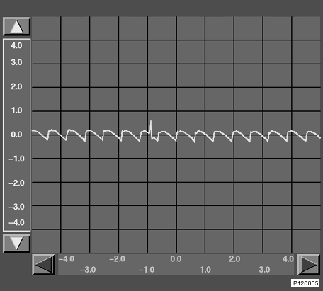 Aşağıdaki resim, arızalı bir alternatördeki gerilim akışını göstermektedir. Her bir dalganın yüksekliği, alternatörün o anki yüküne bağlıdır. Dalgaların uzunluğu devir sayısına bağlıdır. Devir sayısı ne kadar yüksekse, dalga boyları o kadar kısadır.